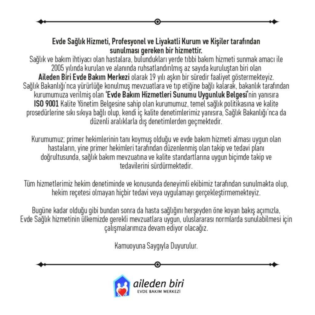 Azerbaycan'da Evde Bakım hizmetleri gelişmekte. Aileden Biri, Evde Bakım Derneği üyesi ve Türk toplumuna uygun bir model geliştirme amacında.